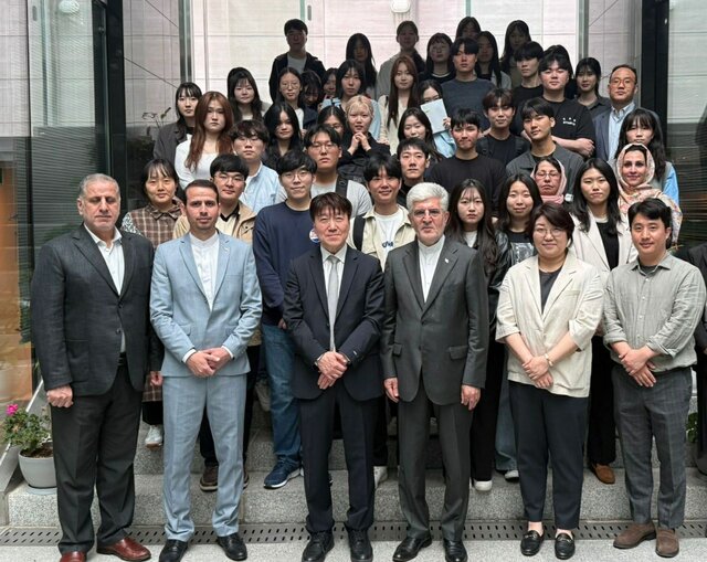 به مناسبت روز ملی پاسداشت زبان فارسی و گرامیداشت حکیم ابوالقاسم فردوسی و در راستای ارتقای روابط دوجانبه نمایندگی ایران در کره جنوبی میزبان جمعی ازاساتید و دانشجویان گروه زبان فارسی و ایرانشناسی دانشگاه هانکوک سئول بود.