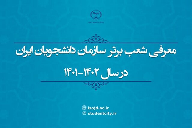به گزارش ایسنا، پس از بررسی و ارزیابیهای انجام گرفته توسط سازمان دانشجویان ایران، شعب برتر این سازمان در سراسر کشور معرفی شدند. بر همین اساس با ارزیابی انجام شده از فعالیتهای سال تحصیلی ۱۴۰۱-۱۴۰۲ شعب سازمان دانشجویان توسط اداره شعب و نظارت بر فعالیتهای تشکیلاتی سازمان، امتیازات هر شعبه بر اساس شاخصهای استاندارد در سه سطح ساختار، برنامه و تعامل تعیین شده است.